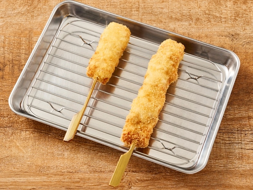 対象の串カツ7種(串カツ豚・レンコン・チーズ・うずら・たらこ・クッキー&クリーム)と、