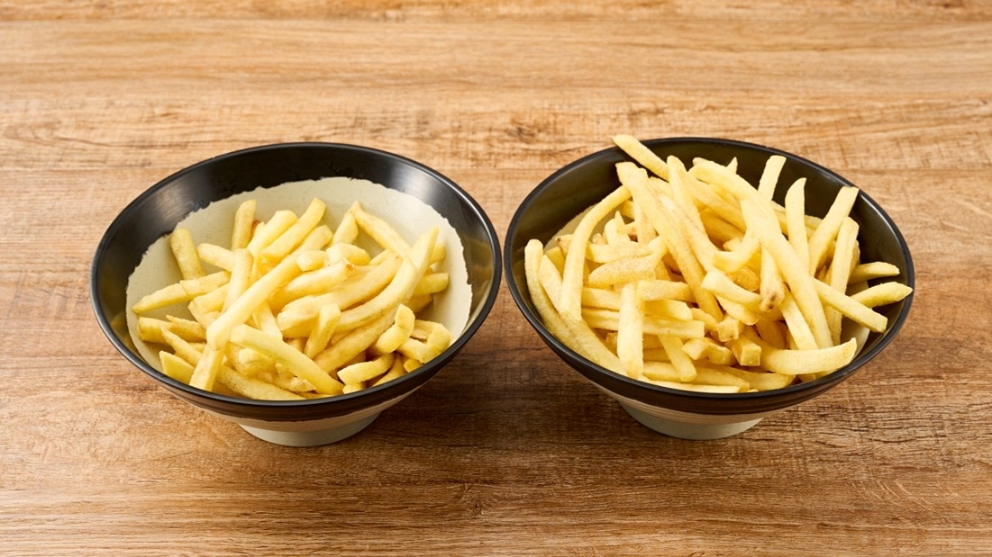 どちらも左が通常サイズ・右が串カツ田中の日サイズ。