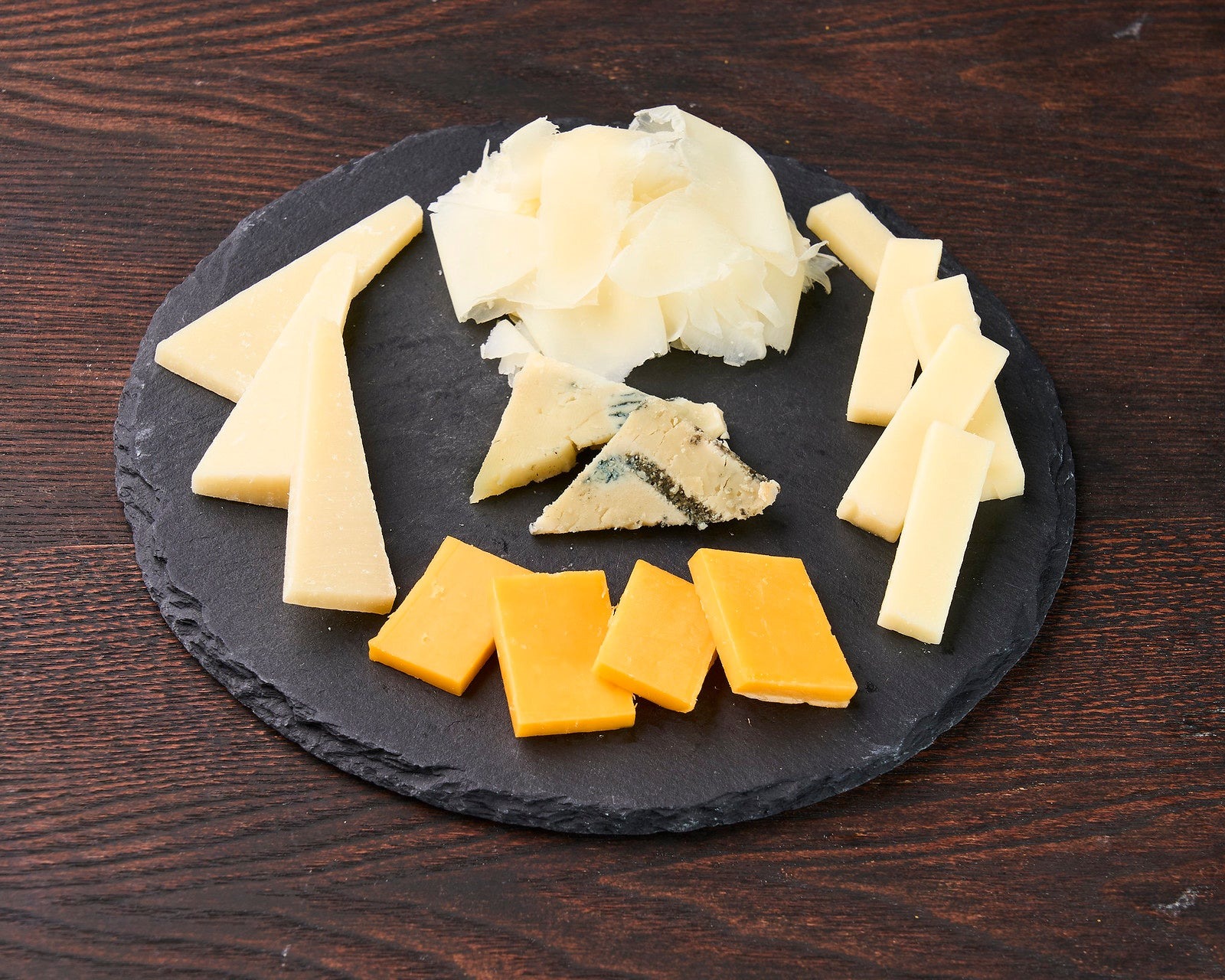 レッドチェダー、モントレージャック、ステッペン、ゴーダ、ゴルゴンゾーラ、コルビージャック、エメンタール、モッツァレラ、スモークなどから、不定期に入れ替わりで6種提供されます。