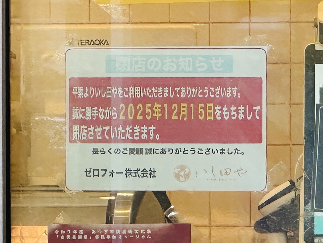 現地を訪れたところ、閉店の張り紙を発見いたしました。↓↓