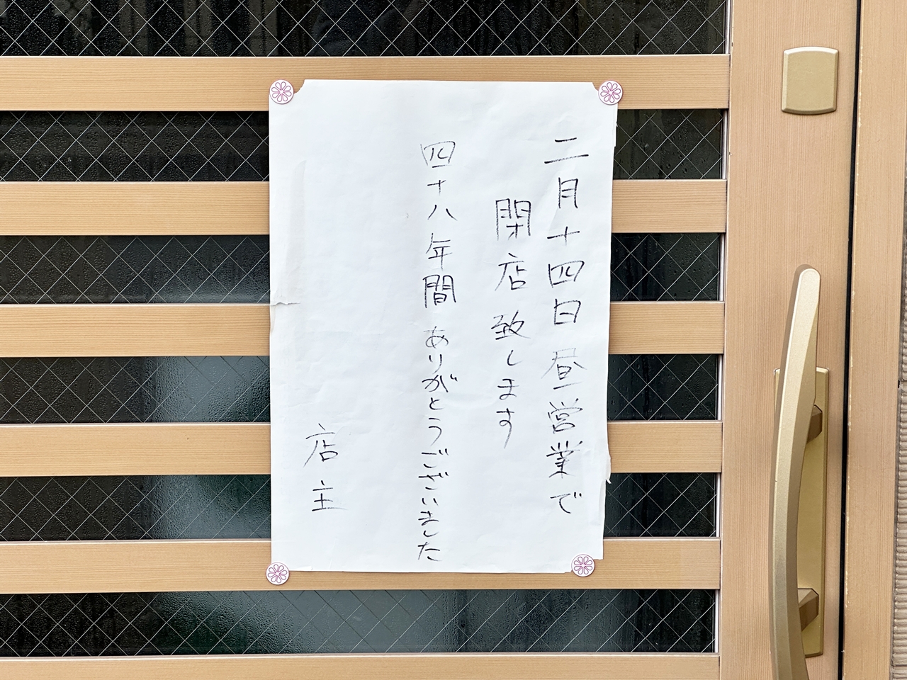 長年地域で愛されてきた、老舗そば屋「松月庵(しょうげつあん)」が2月14日(土)をもって閉店することが分かりました。