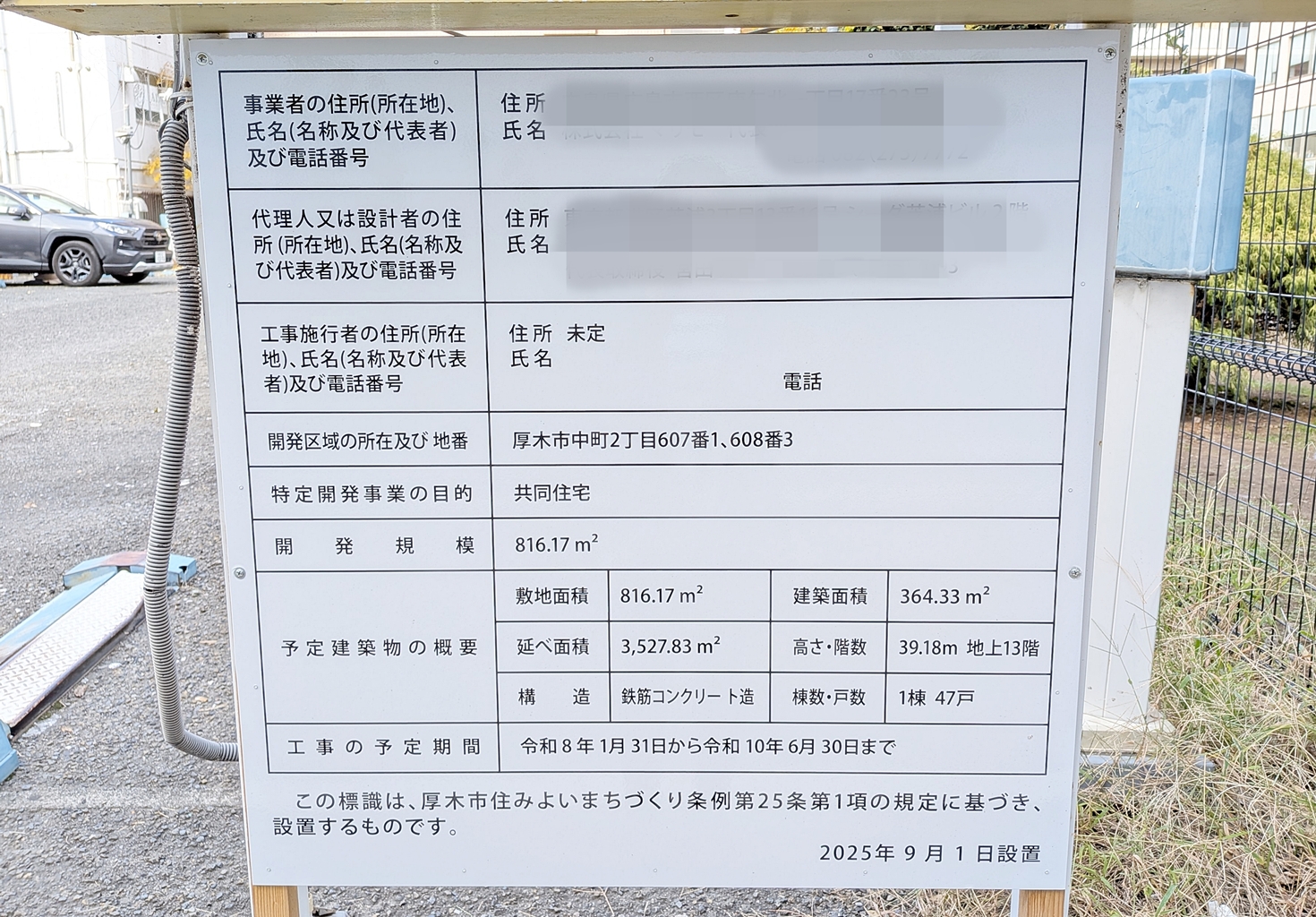 先日、厚木らぼ記事にて「タイムズ相石パーク厚木中町No.2」の場所に工事看板が出現したとお伝えしました。