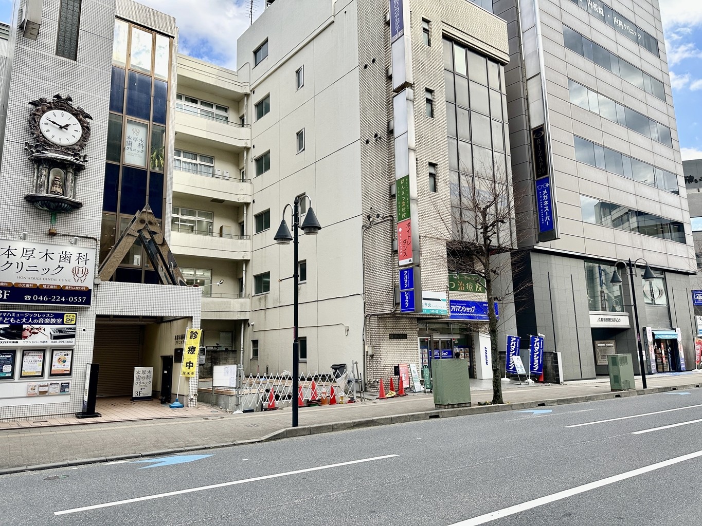 「本厚木歯科クリニック」が入ったビルのお隣、「ホテル東海」からあつぎ大通りを挟んだ向かいの場所です。
