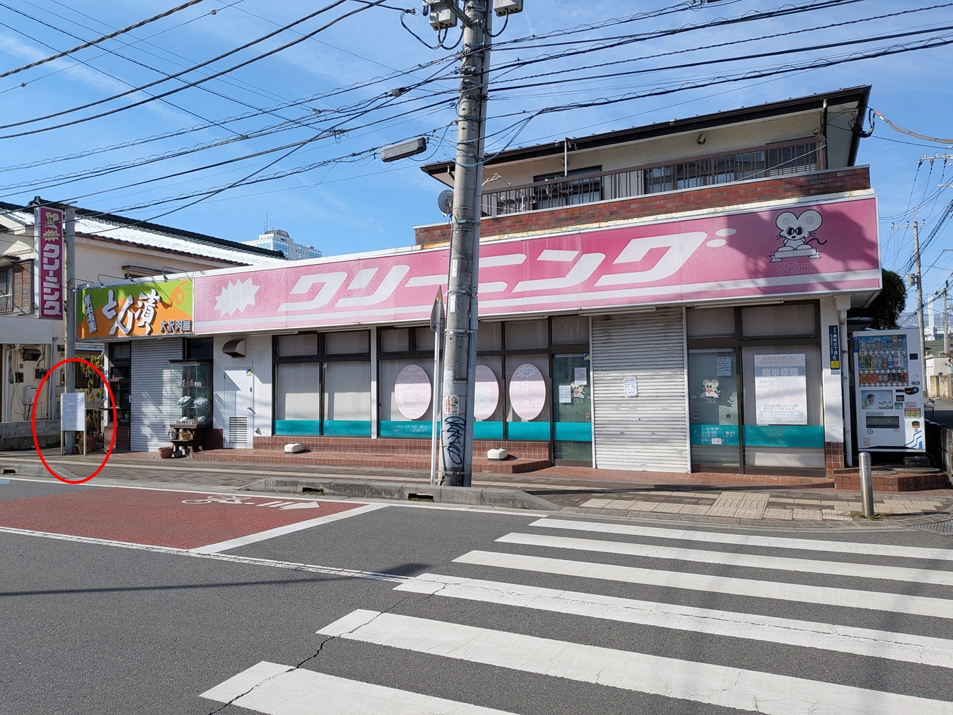 【話題】「サカエクリーニング」&とん漬「大沢肉屋」が入っている建物の前に工事看板が出現![厚木市寿町]