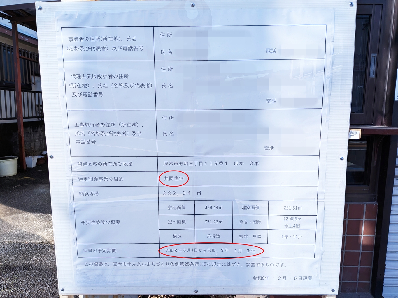 工事の予定期間は令和8年6月1日から令和9年4月30日と記載されていました。
