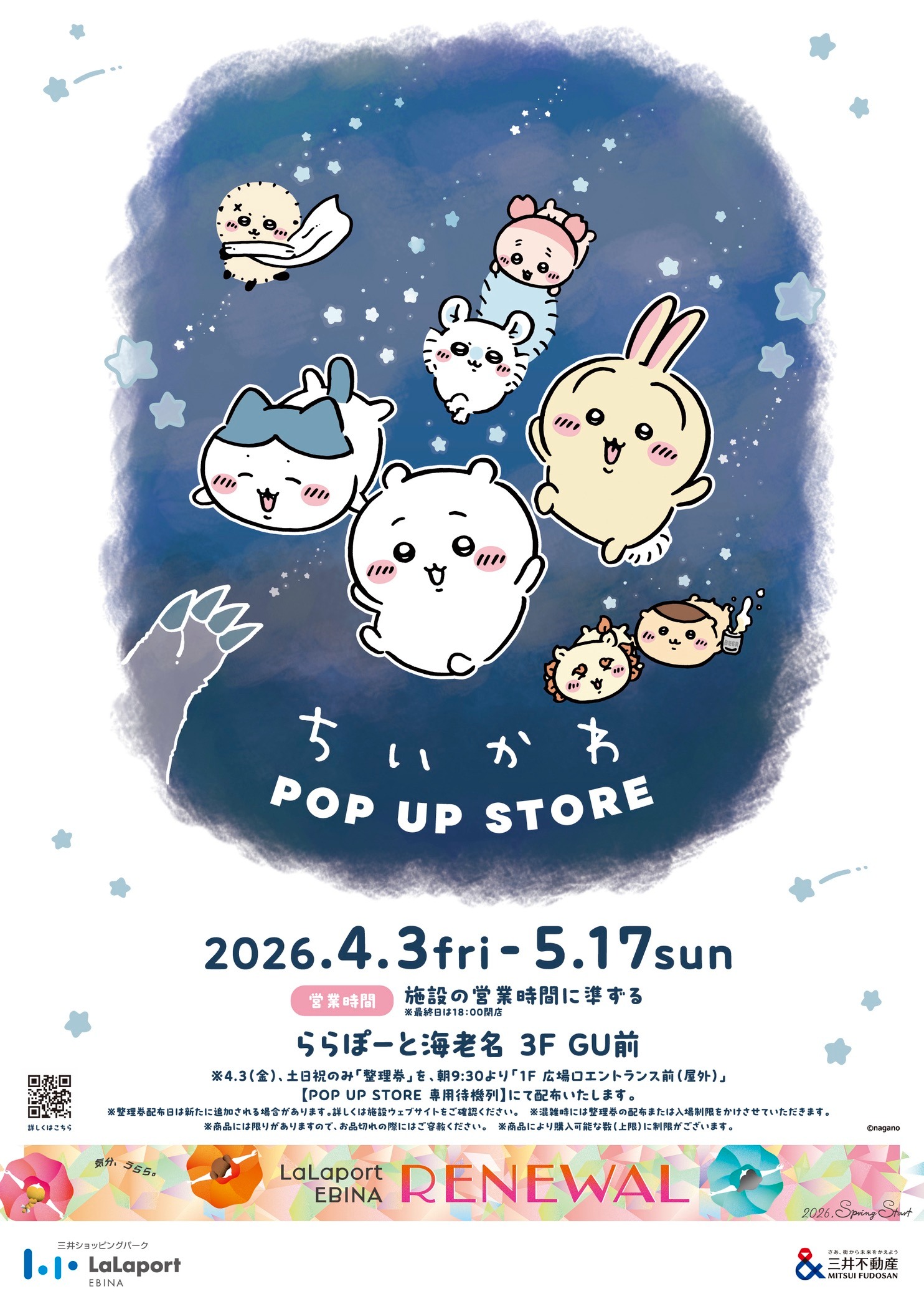 期間限定「ちいかわPOP UP STORE」がららぽーと海老名に登場★5月17日まで。