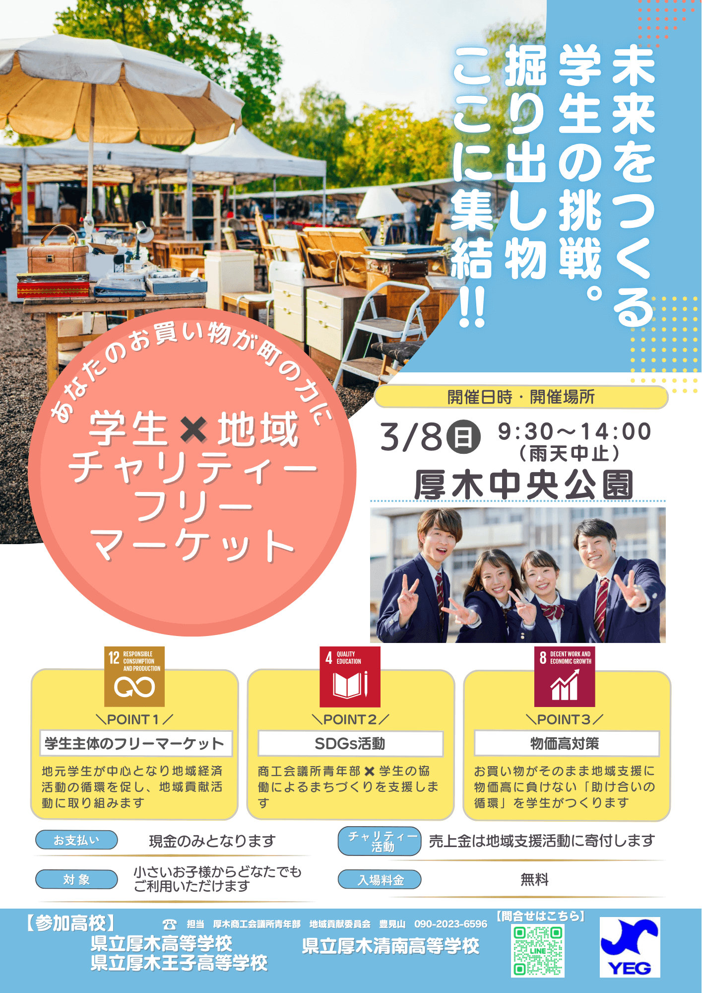 「学生×地域チャリティーフリーマーケット」3月8日(日)開催【会場:厚木中央公園】