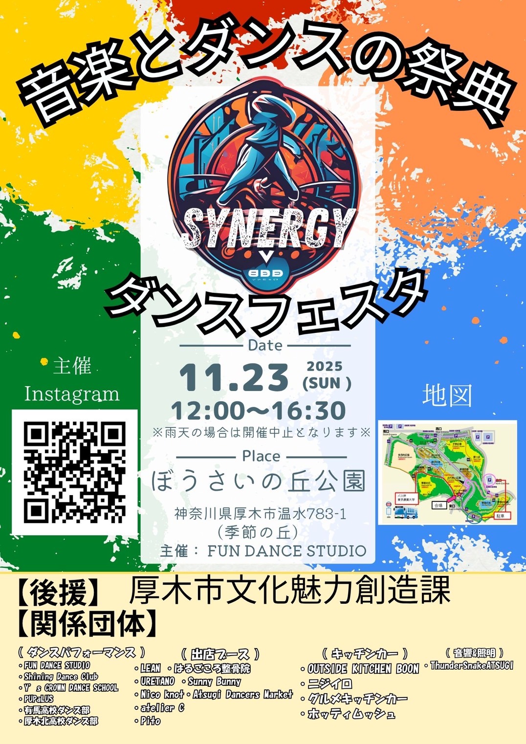 【11月23日開催】音楽とダンスの祭典「SYNERGY」ダンスフェスタ開催★マルシェやキッチンカーも♪[ぼうさいの丘公園]