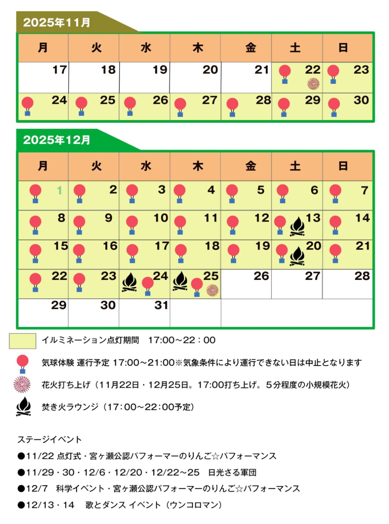 11月22日(土)・12月25日(木)には花火打ち上げが!