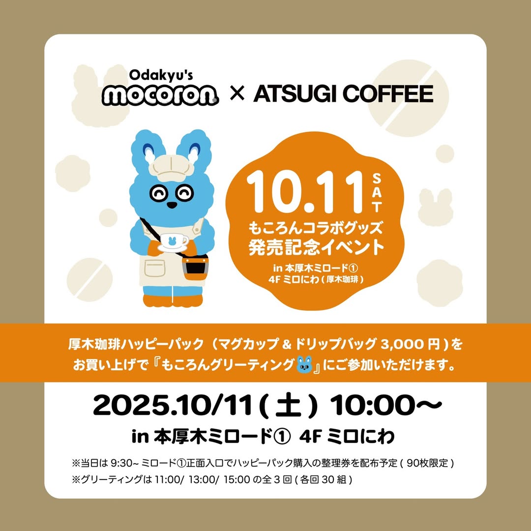 厚木珈琲もころんコラボグッズ発売記念イベントが本厚木ミロードで開催されます。
