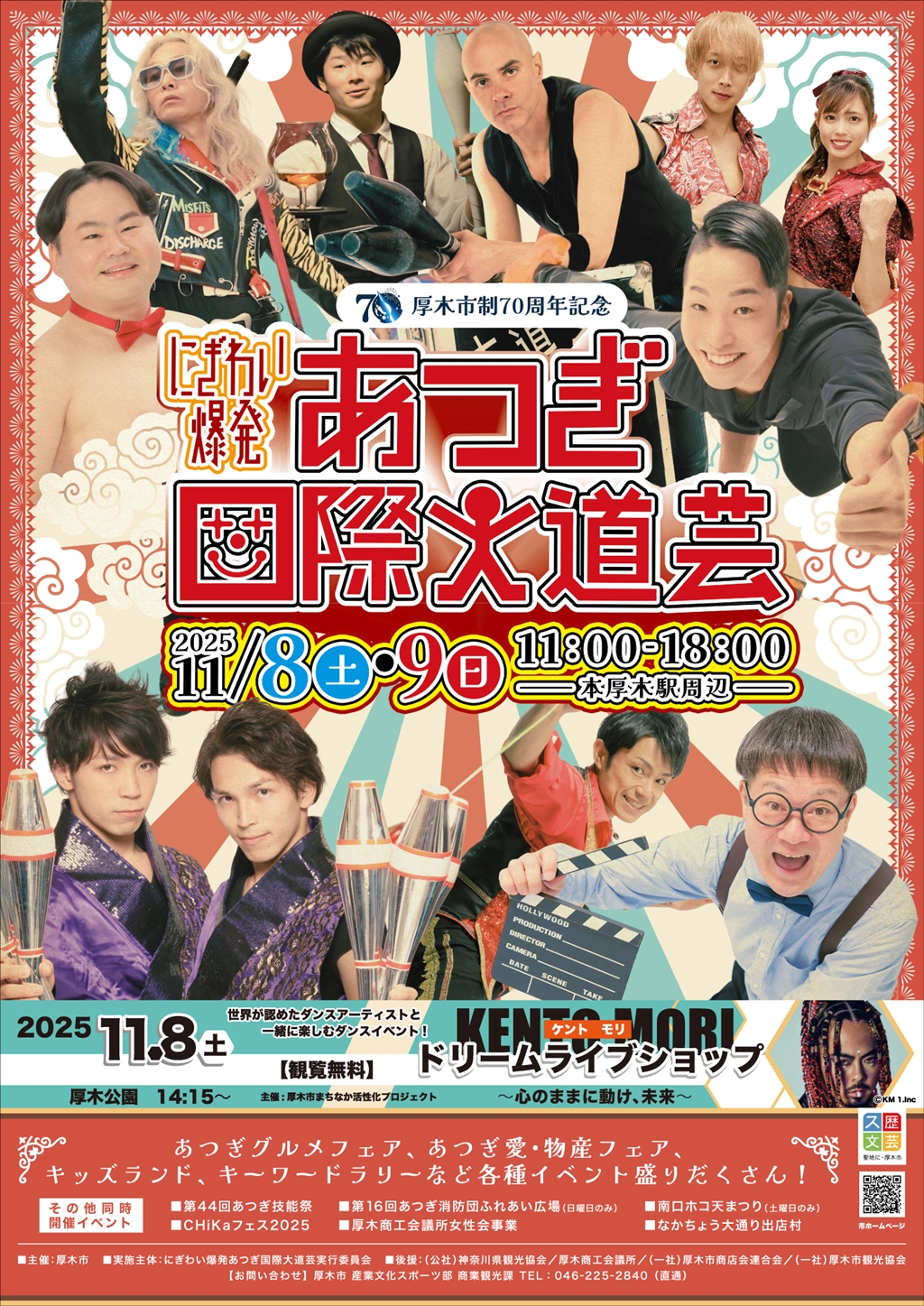 厚木市制70周年記念「にぎわい爆発あつぎ国際大道芸2025」11月8日(土)・9日(日)本厚木駅周辺で開催。