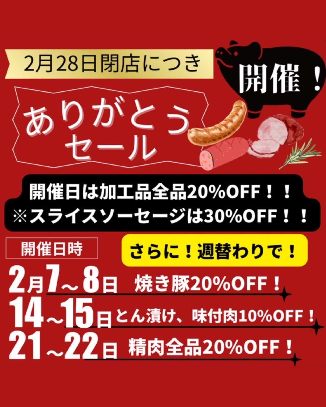 ・加工品 20%OFF(※スライスソーセージ 30%OFF)