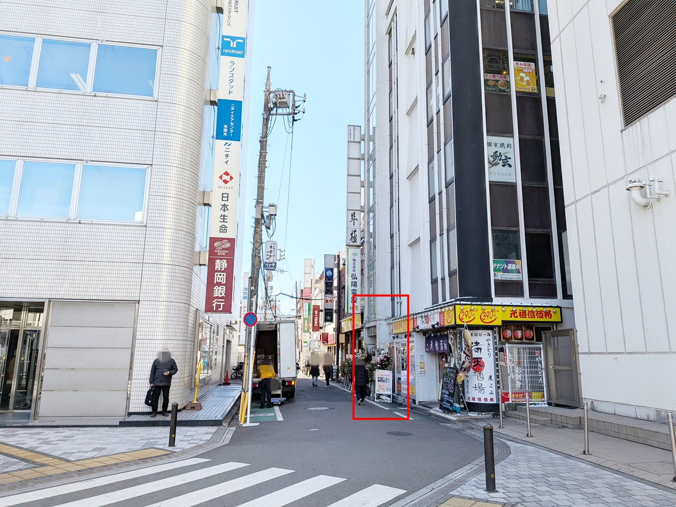 店舗は4階で、上記画像の赤枠で囲った部分からビル内へ入れます。