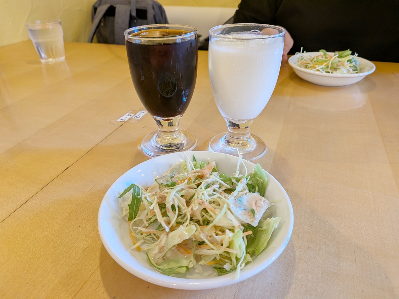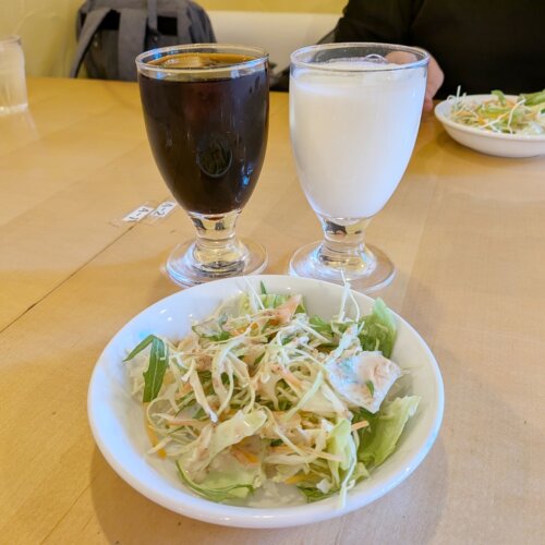 はじめにドリンクとサラダが運ばれてきて(ラッシーが選べるの、嬉しい♡)呑気にお料理を待っていた厚木らぼ編集部。