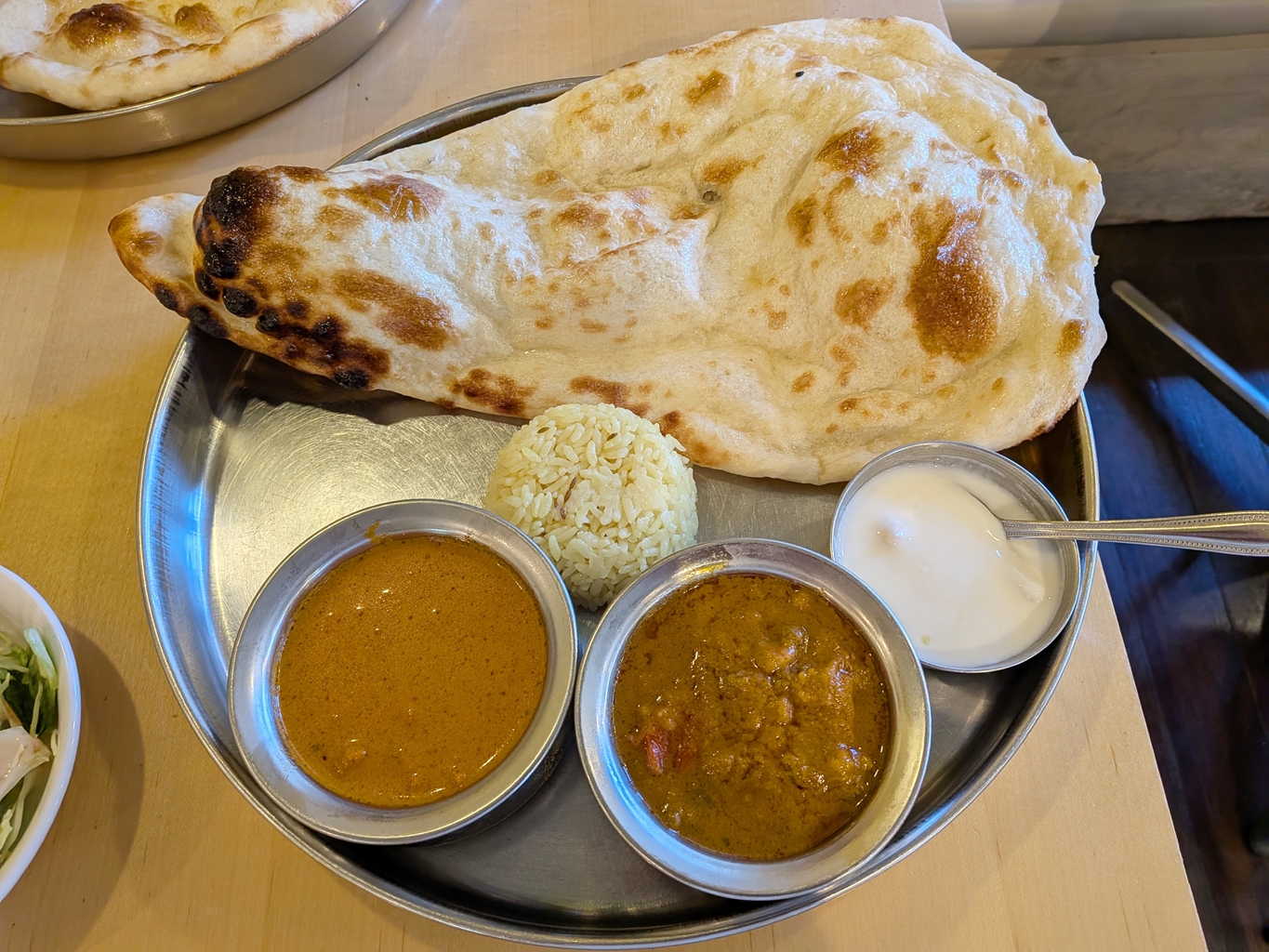 カレーは甘口の「バターチキン」と中辛の「野菜カレー」をチョイス。