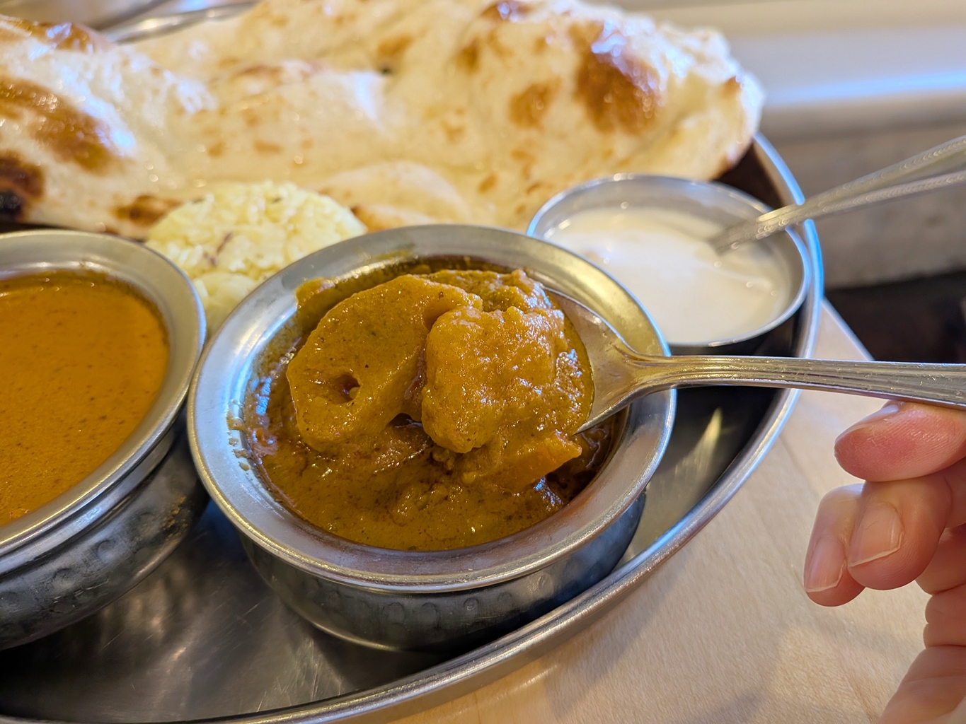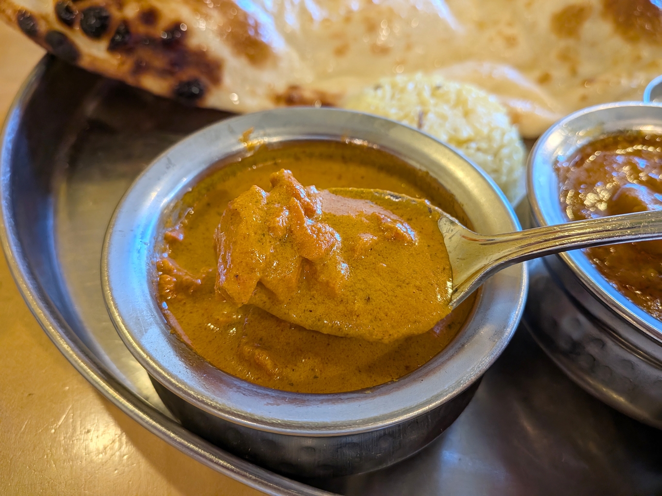 個人的にはナンとライスが両方ついてくる点にも驚きました。(たくさん食べたい方にぜひオススメしたいです!)