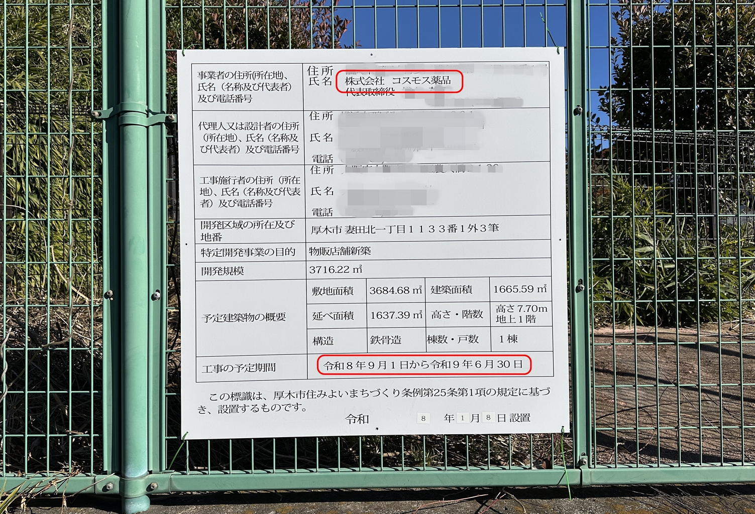 事業者「株式会社 コスモス薬品」の工事看板が登場