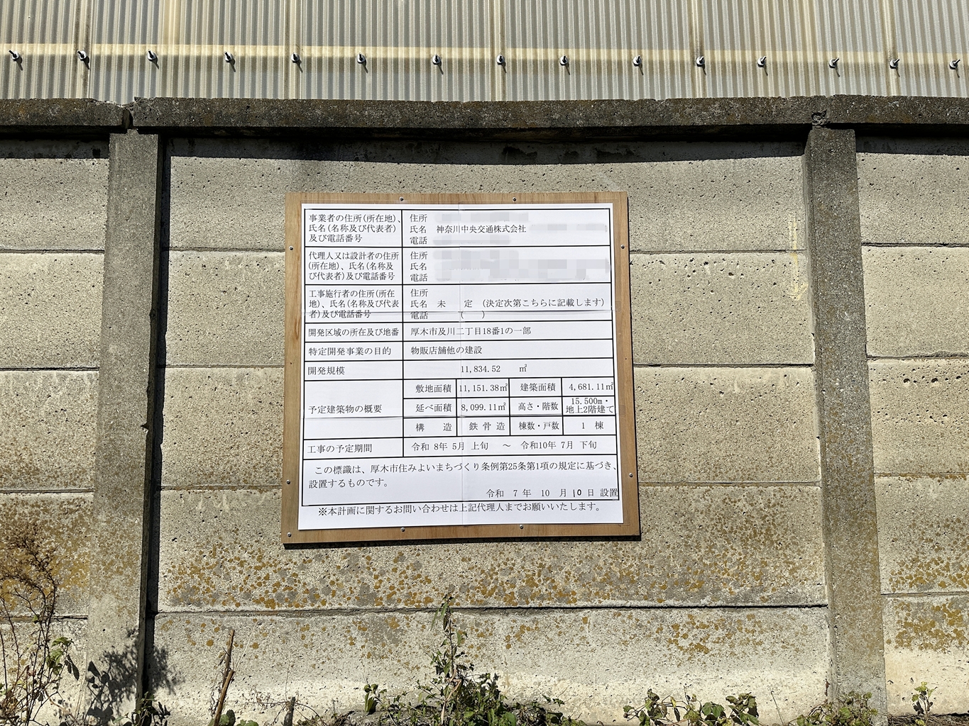 どのような物販店舗か工事看板では特定できず、気になりますね…。