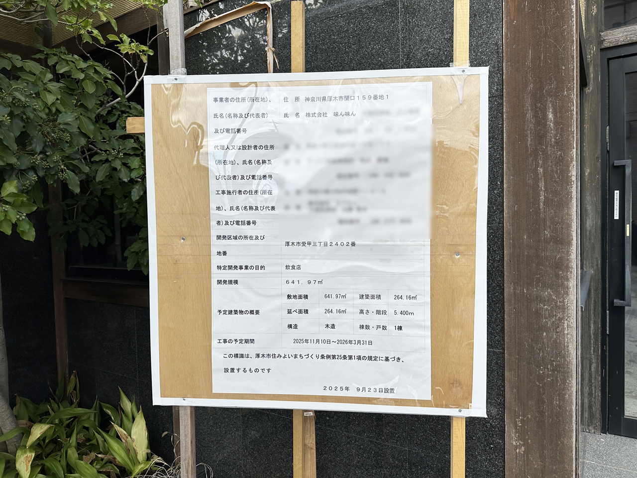 お店の入口側に工事看板を発見!!