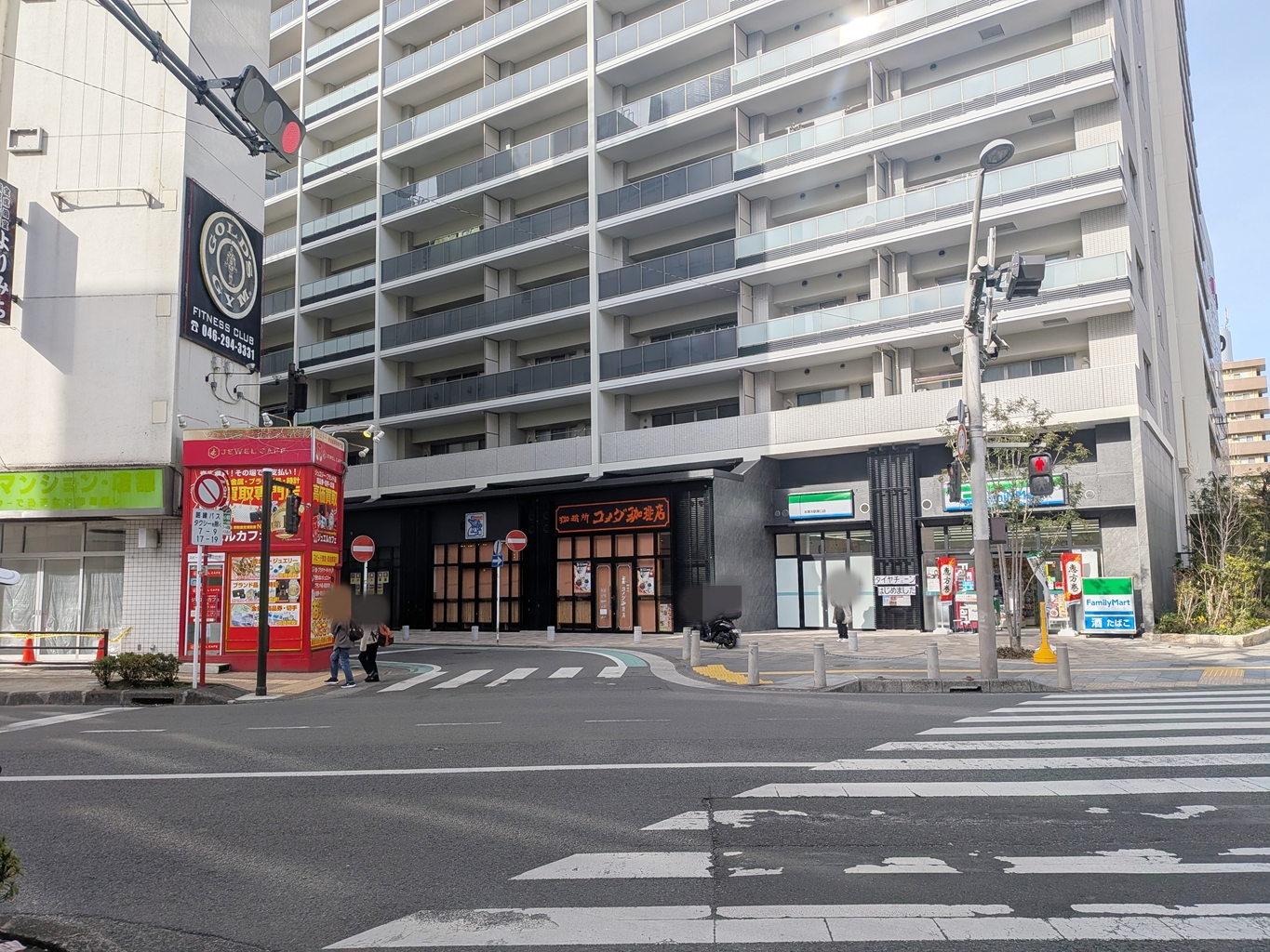 「本厚木駅東口」交差点に面したマンション「エクセレントシティー本厚木駅前」1階です。