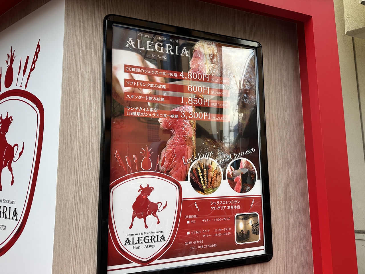 「シュラスコ&ビアレストラン ALEGRIA 本厚木」が4月17日オープン予定のようです♪