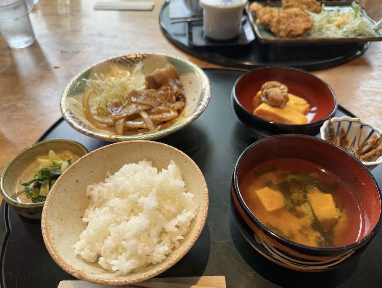 ごはん・味噌汁・小鉢いろいろ・副菜、といった、バランスの良い内容が並んでいます。