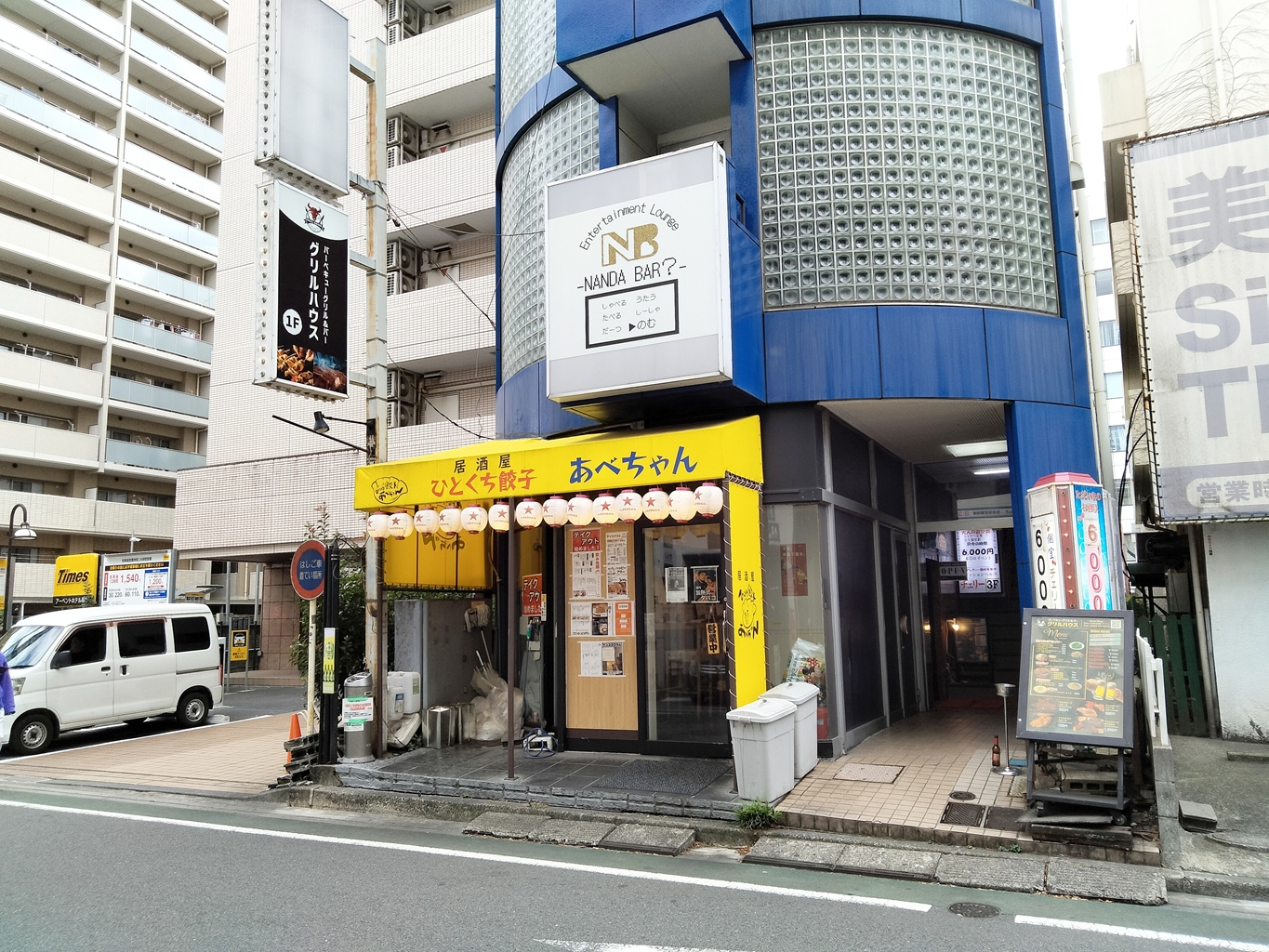 目立つ黄色い看板の居酒屋「ひとくち餃子 あべちゃん」と同じビルの1階に入っており、
