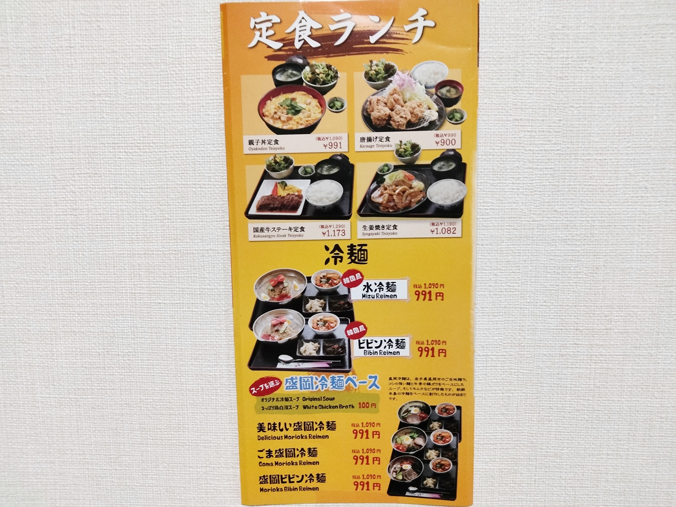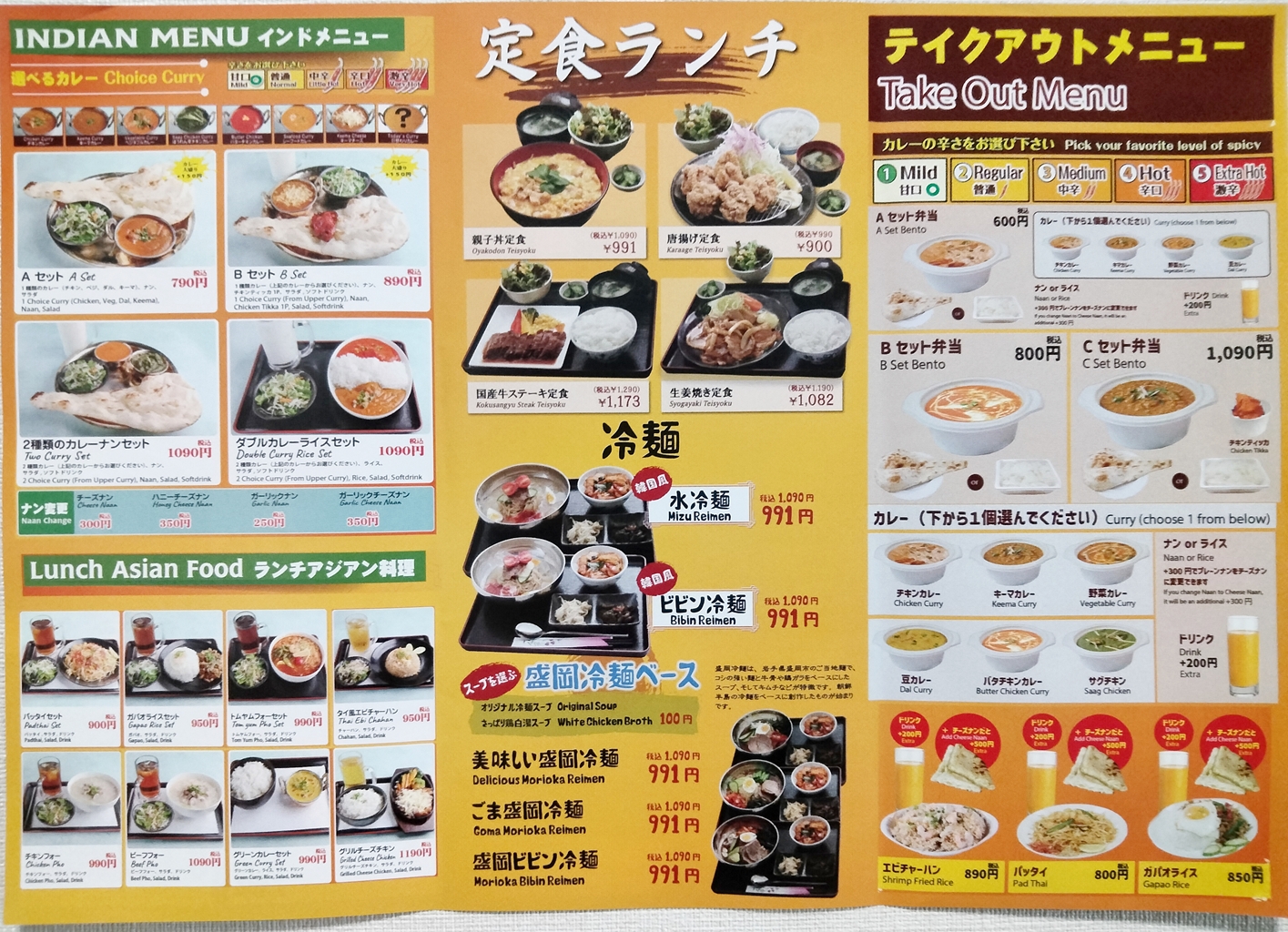 ランチメニュー・テイクアウトメニューは以下の通り。