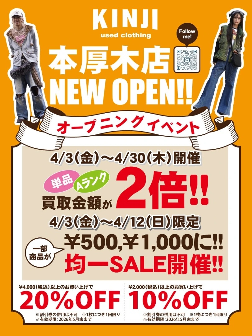 【開店】エクセレントシティ本厚木駅前1階に古着屋「KINJI本厚木店」4月3日オープン予定だって★[厚木市中町]