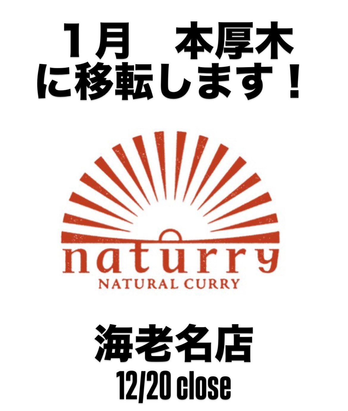 「naturry(ナチュリー) ナチュラルカレー」移転先予定の場所は厚木市旭町。本厚木駅から徒歩30秒♪