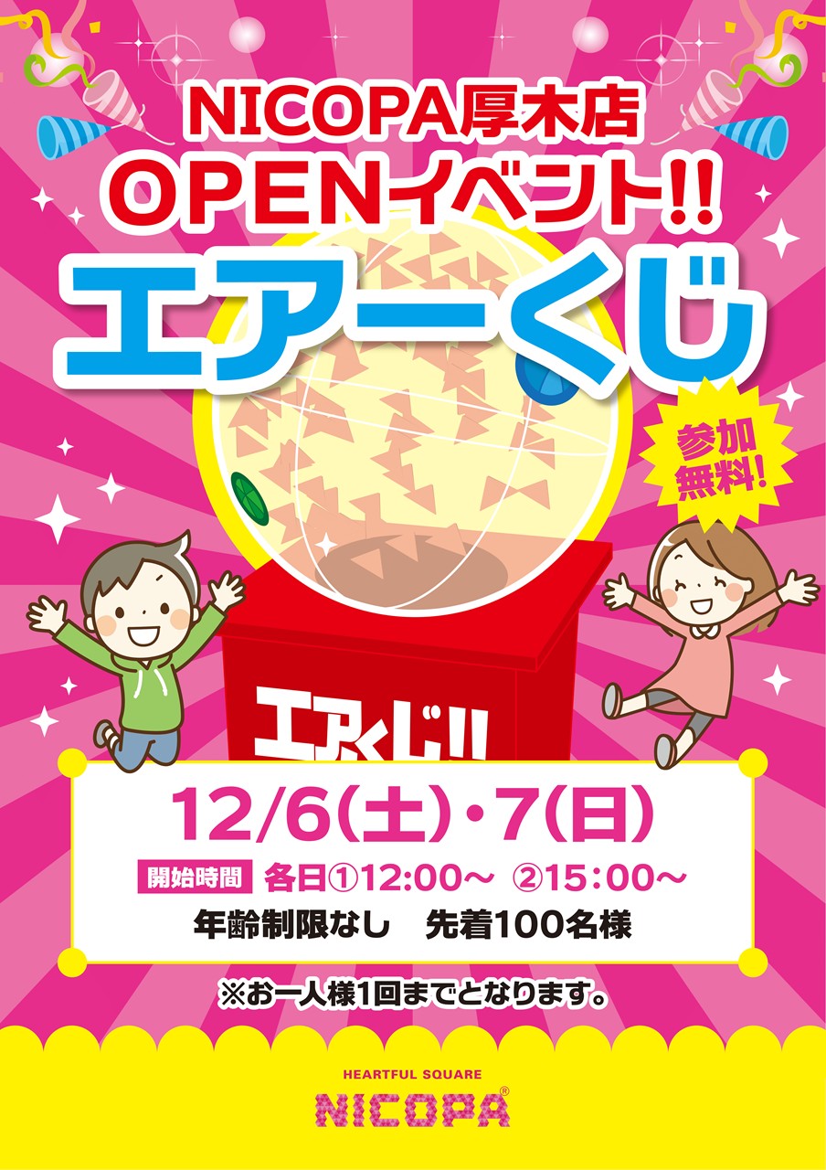 【開店】ファミリーアミューズメント施設「NICOPA厚木店」が、厚木ガーデンシティ内5Fに12月5日オープン!記念イベントあり◎