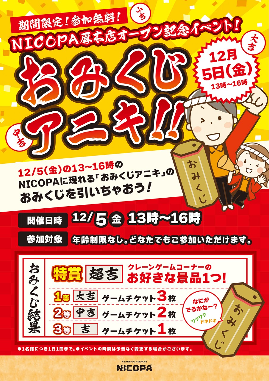 オープン初日に「おみくじアニキ」がNICOPAに登場します!