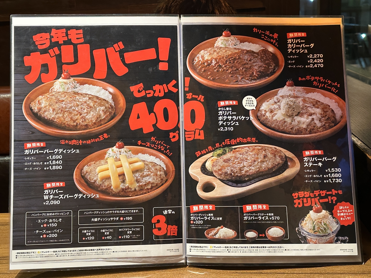 【話題】びっくりドンキー恒例の「今年もガリバー!」フェア開催中!400gのビッグサイズハンバーグを堪能してきた♪[厚木市妻田]