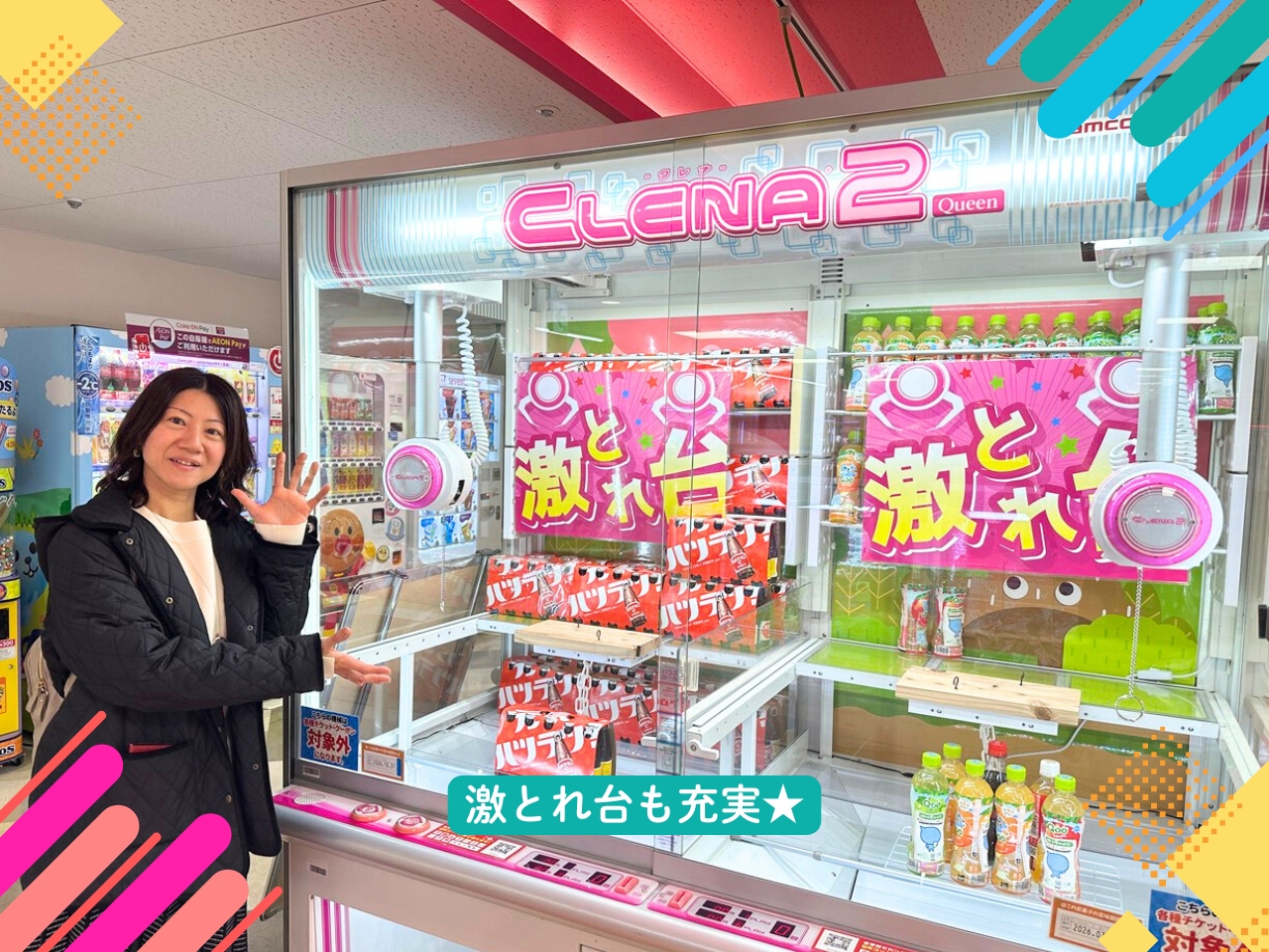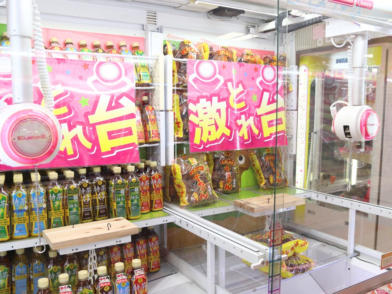 ドリンク類やお菓子などが取れる、大人にも人気の「激取れ台」も充実!