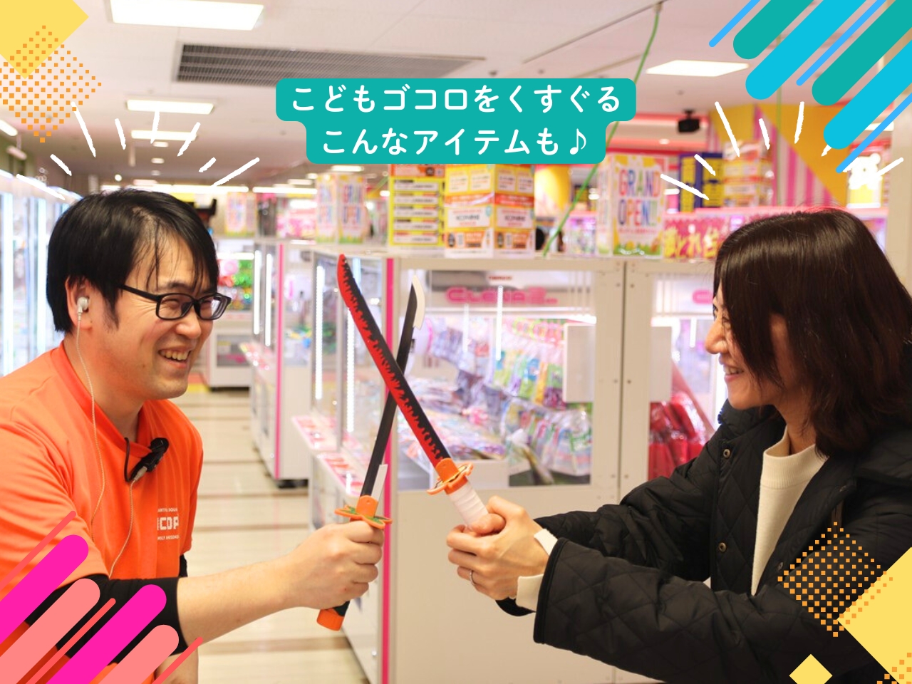 ※上記画像は取材にあたり特別な撮影許可を取っています。店内で獲得した景品を振り回すのは危険があるためご遠慮ください。