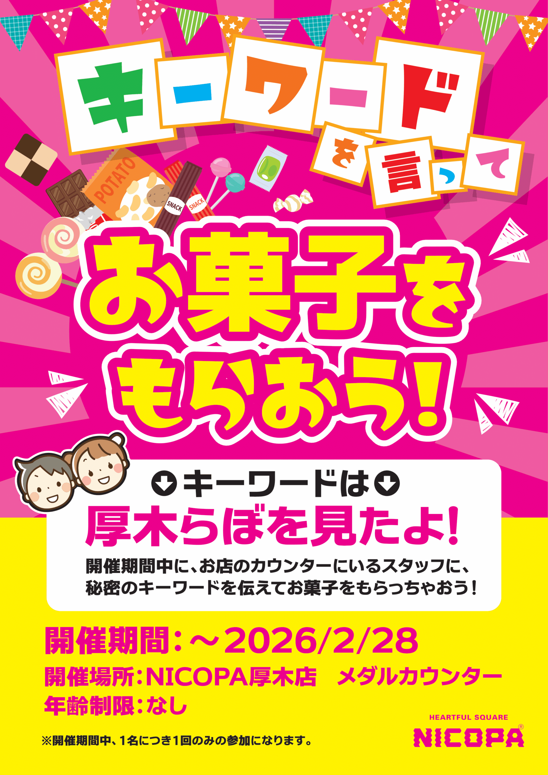 スタッフさんにキーワードを伝えるだけで参加できる特典となりますので、