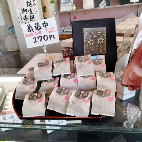 おすすめ商品の「愛甲 亀最中」は真ん中に栗がごろり♪