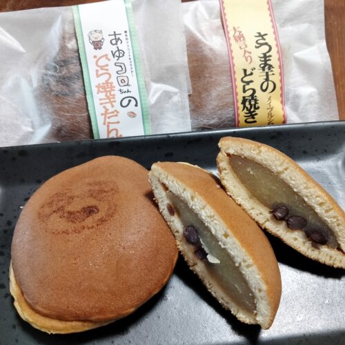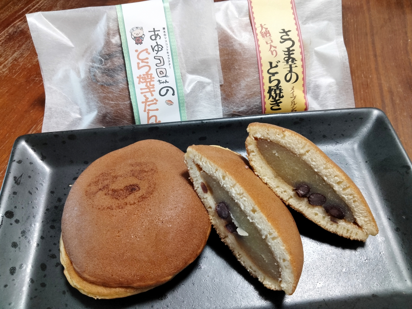 どら焼きはあゆコロちゃんのデザインが可愛い定番のつぶあん入り「どら焼き」と、