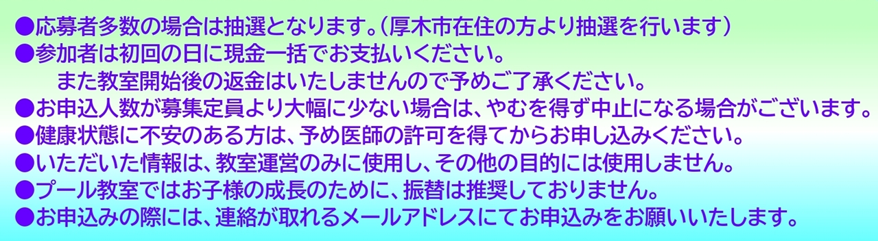 定期教室と同様に厚木市ふれあいプラザ総合受付、またはメールにてお申込みください。